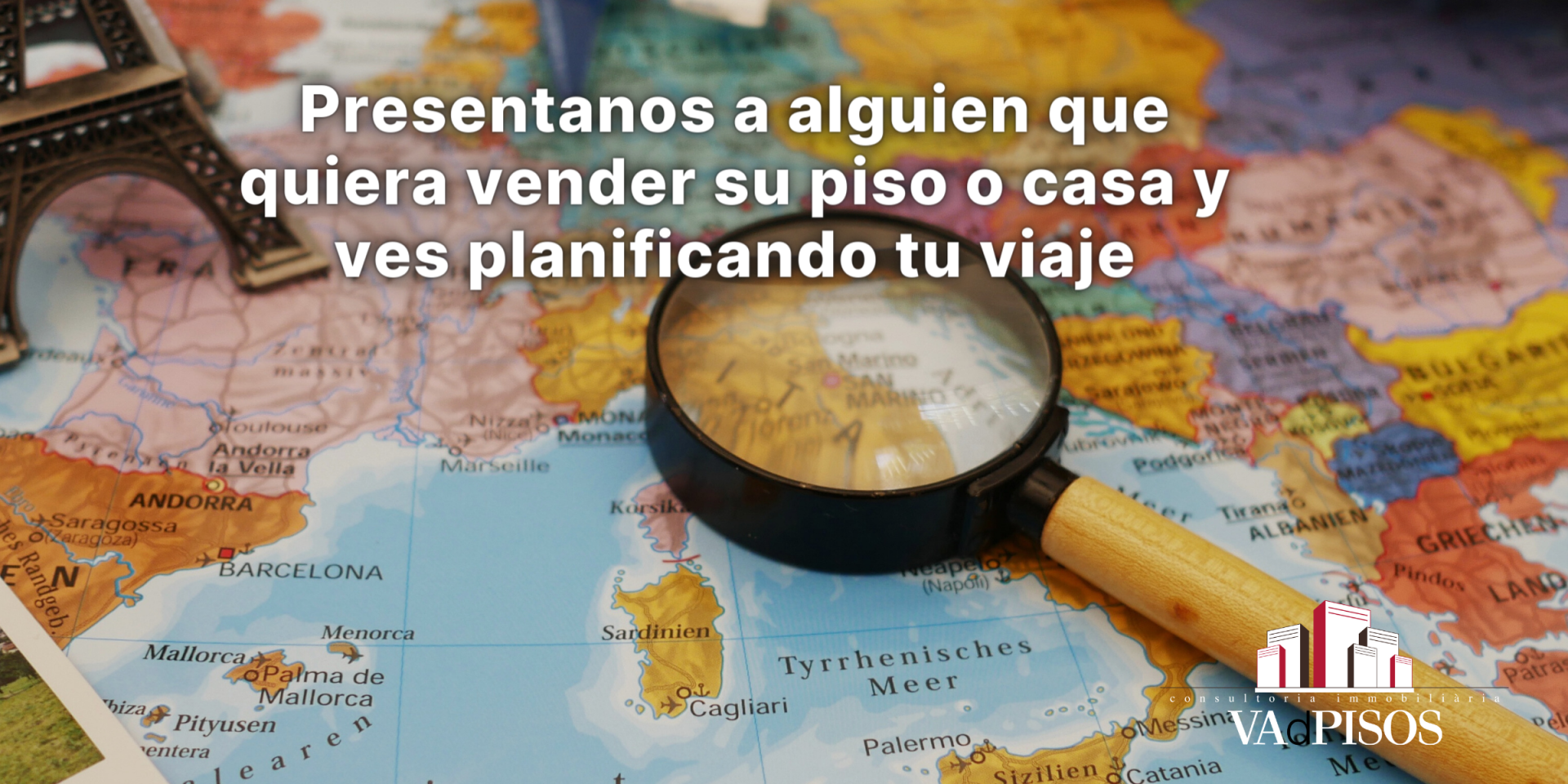 Si nos presentas a alguien que esté interesado en vender su propiedad (Piso o casa) en Barcelona o alrededores (en un radio de 20 km alrededor de Barcelona), y logramos un acuerdo para vender su piso o casa, te recompensaremos, invitándote a un viaje escapada de entre 3 y 5 días para dos personas, con todos los gastos pagados donde podrás elegir tu destino de entre una lista de opciones emocionantes que te presentaremos, desde escapadas rurales hasta destinos de playa o ciudades cosmopolitas, en España o Europa ¡la elección es tuya!